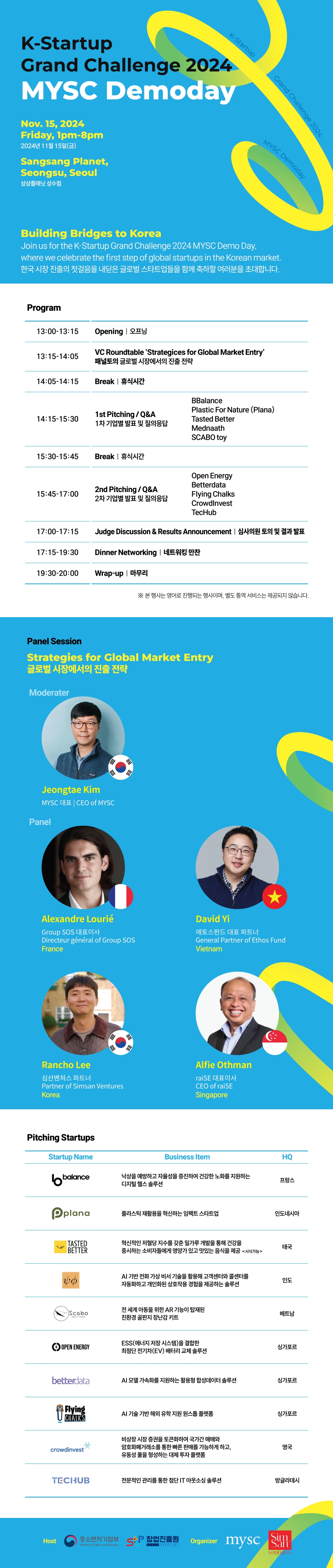✨ MYSC is hosting a Demo Day event this Friday afternoon (11/15), featuring 9 international startups pitching their businesses and sharing their entrepreneurial journeys in Korea.
